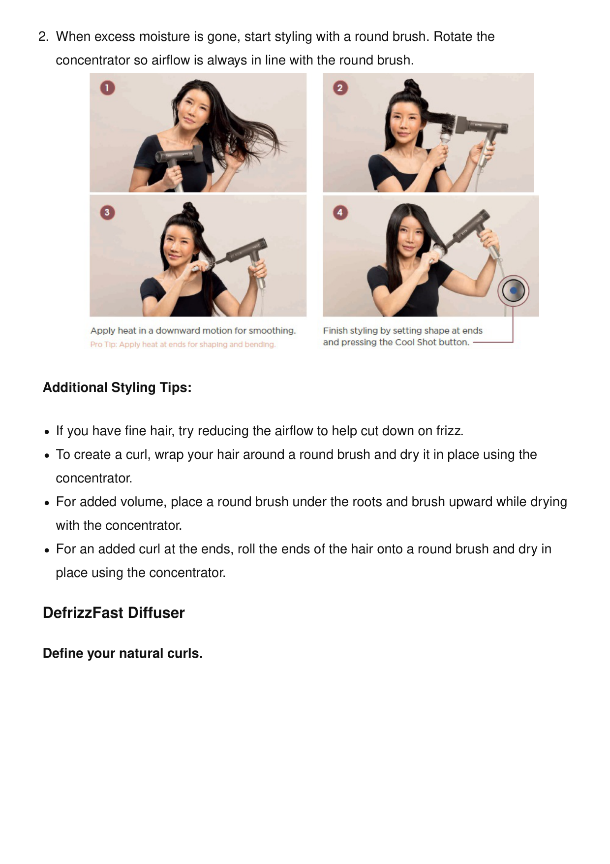 Additional Styling Tips: If you have thinner/finer hair, you can decrease the airflow to help reduce flyaways. If you have thinner/finer hair,r you can decrease the heat. Turbo Concentrator Sleek blowouts, made easy.