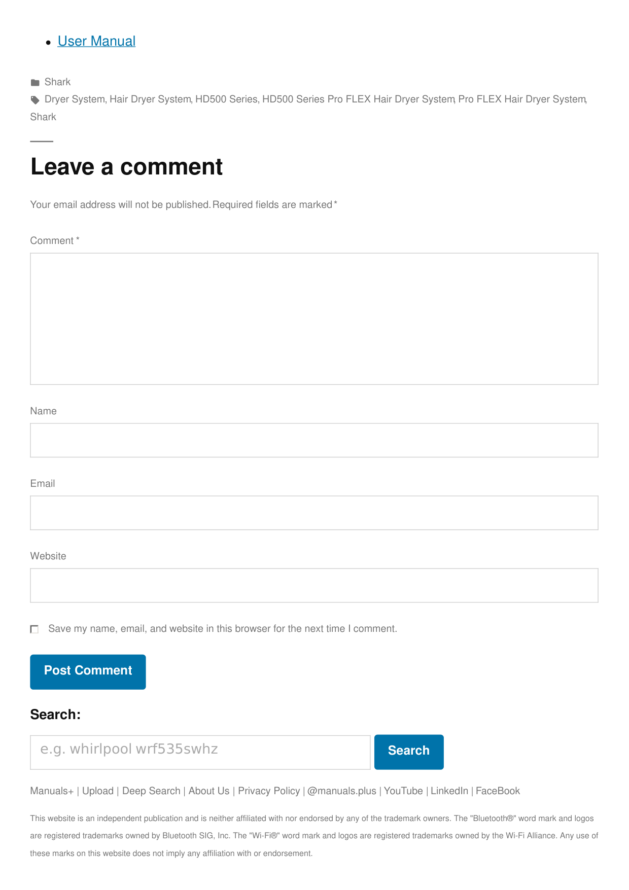 Search Manuals+ | Upload | Deep Search | About Us | Privacy Policy | @manuals.plus | YouTube | LinkedIn | FaceBook This website is an independent publication and is neither affiliated with nor endorsed by any of the trademark owners. The "Bluetooth®" word mark and logos are registered trademarks owned by Bluetooth SIG, Inc. The "Wi-Fi®" word mark and logos are registered trademarks owned by the Wi-Fi Alliance. Any use of these marks on this website does not imply any affiliation with or endorsement. Your email address will not be published. Required fields are marked * Comment * Name Email Website Save my name, email, and website in this browser for the next time I comment. Post Comment