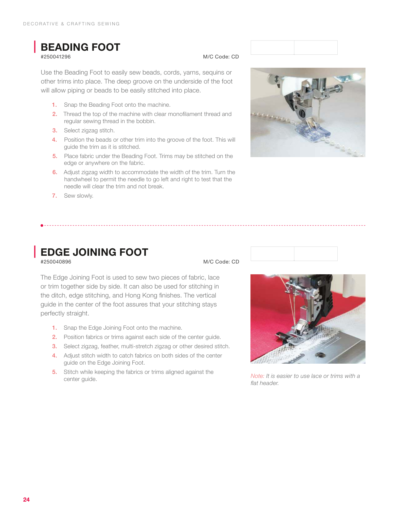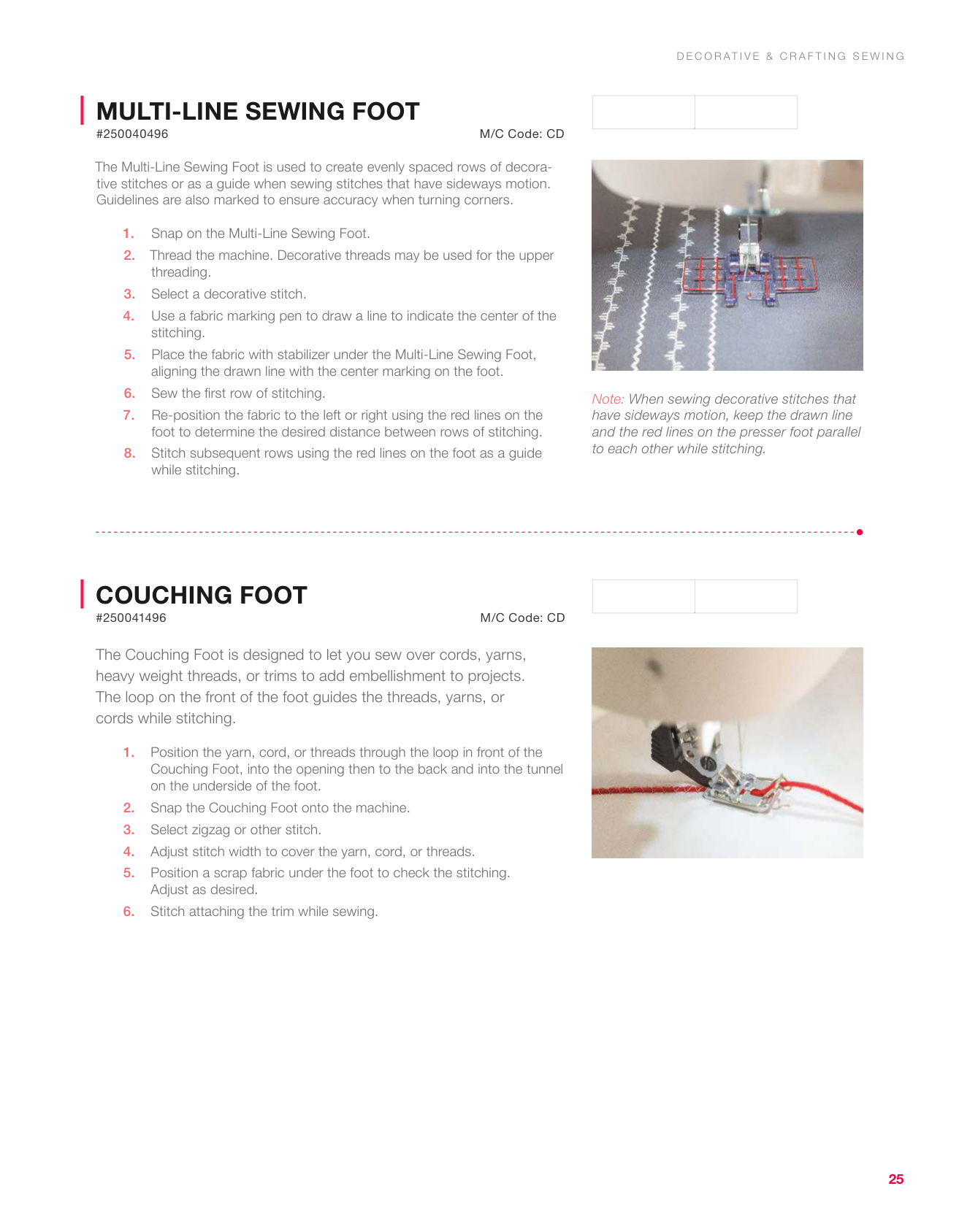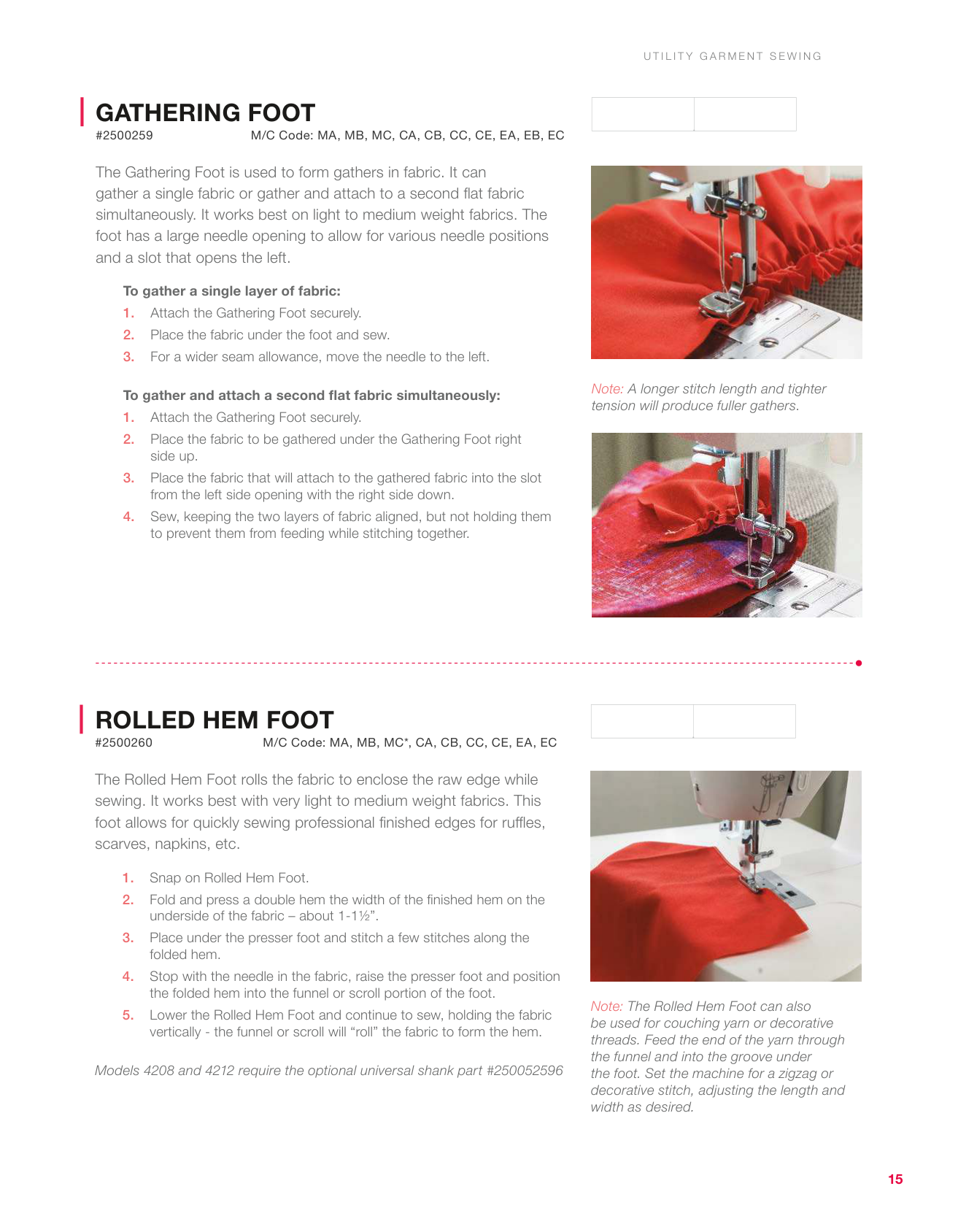 page 43-46 Beading Foot - Overlock/Serger page 45 Blind Hem Foot - Overlock/Serger page 43 Elastic Foot - Overlock/Serger page 43 Gathering Foot - Overlock/Serger page 44 Lace Foot - Overlock/Serger page 45 Piping Foot - Overlock/Serger page 46Presser Feet Kits