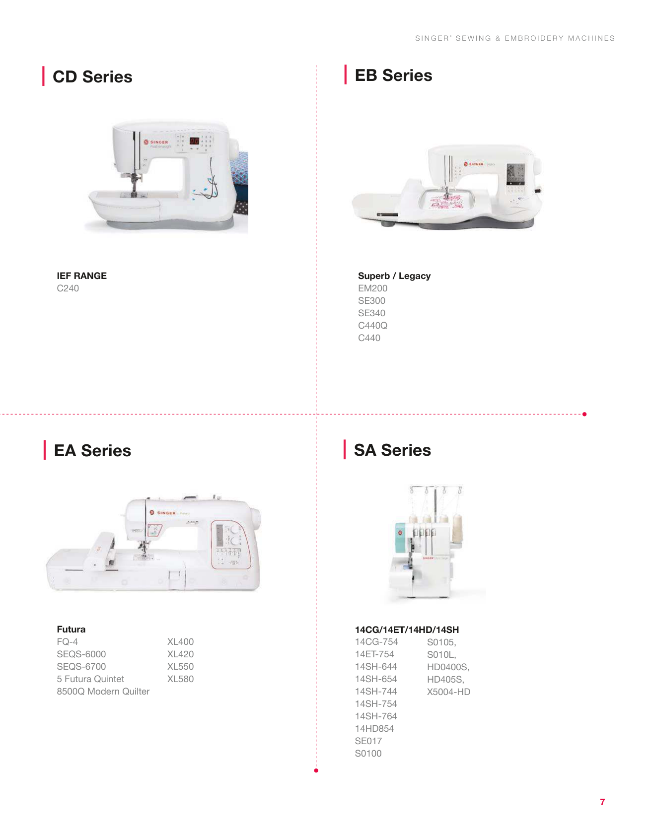 EB Series SA SeriesS I N G E R ® S E W I N G & E M B R O I D E R Y M A C H I N E S