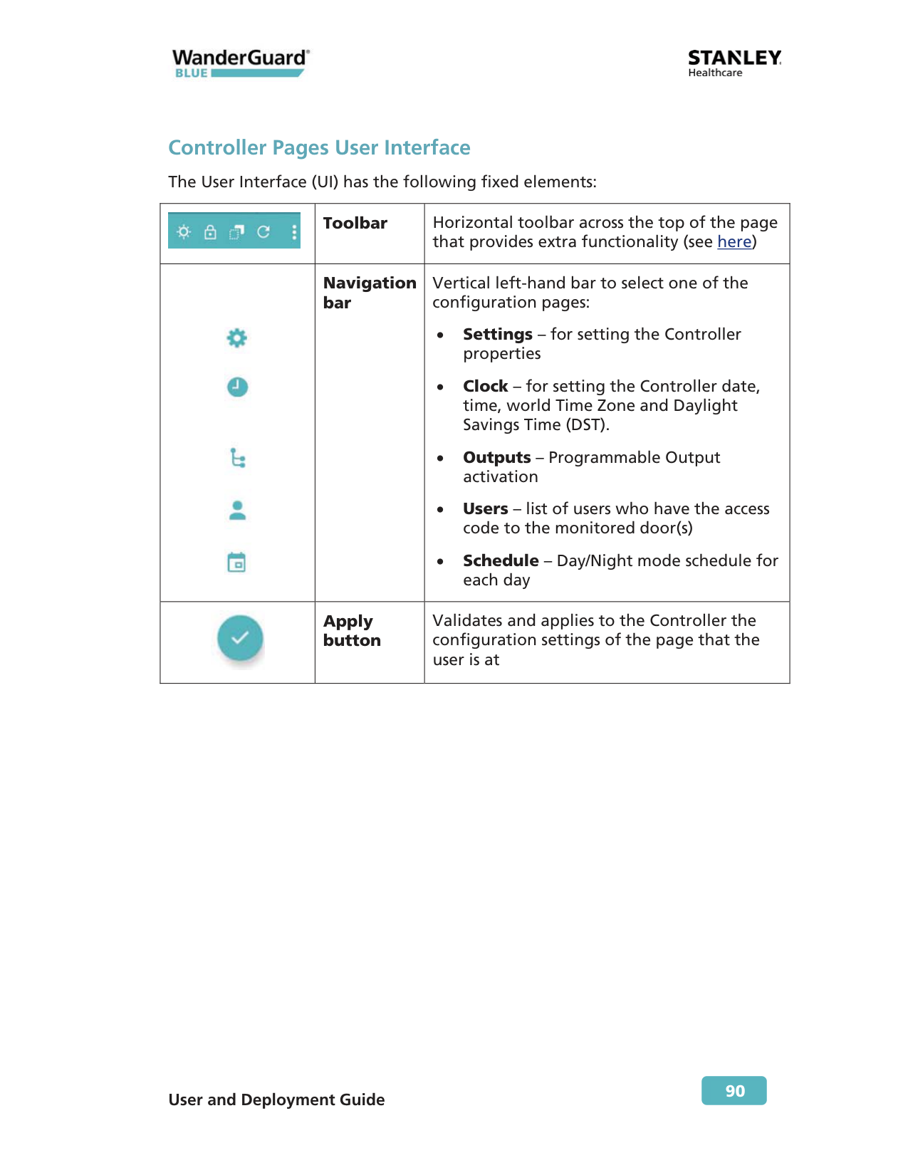 90 Controller Pages User Interface The User Interface (UI) has the following fixed elements: