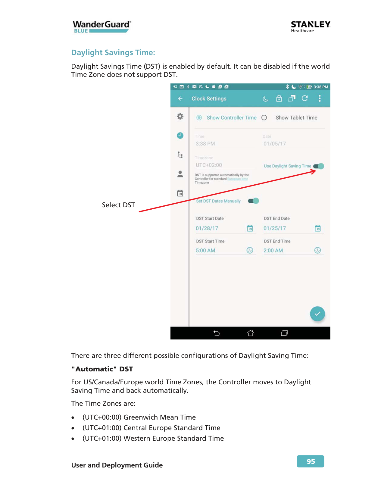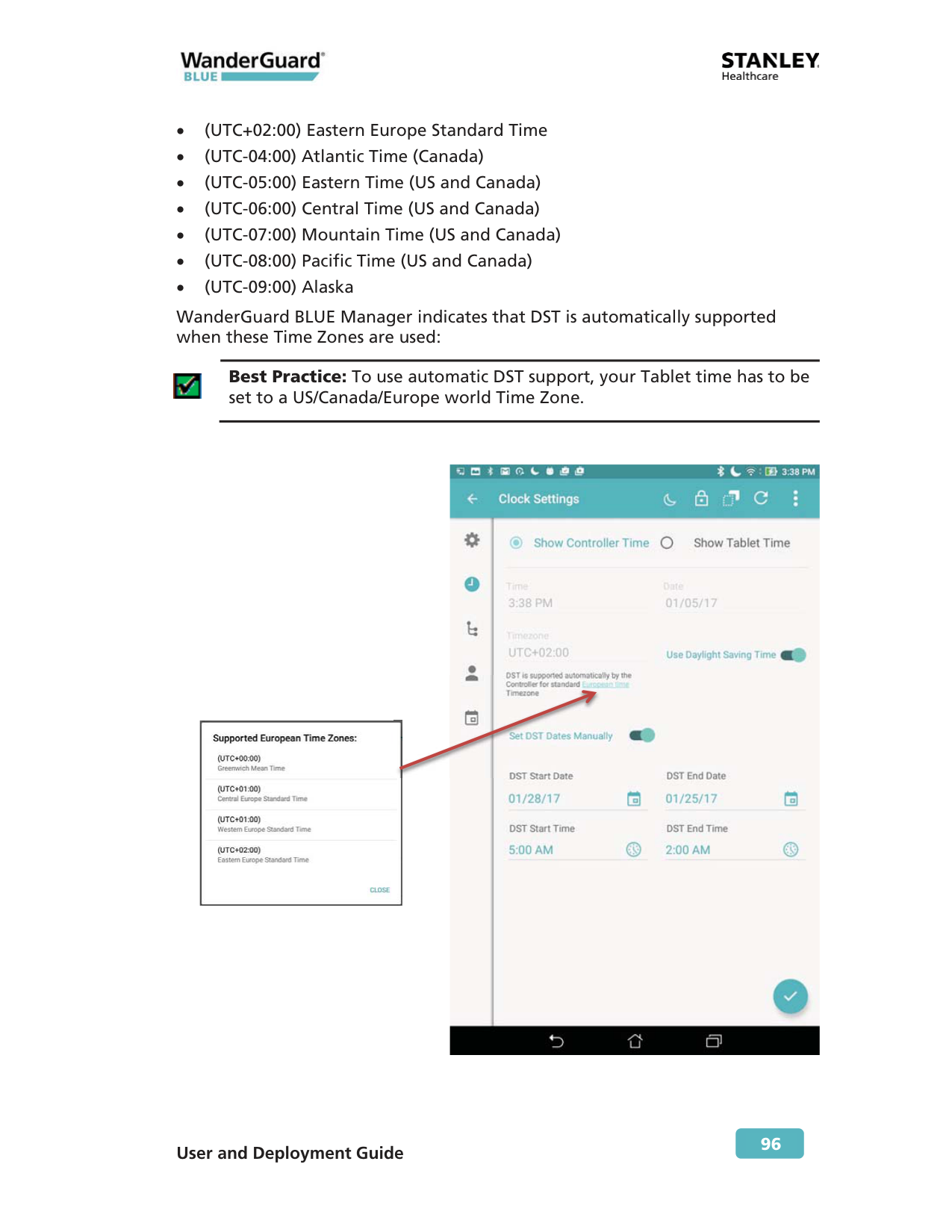 Best Practice: To use automatic DST support, your Tablet time has to be set to a US/Canada/Europe world Time Zone.