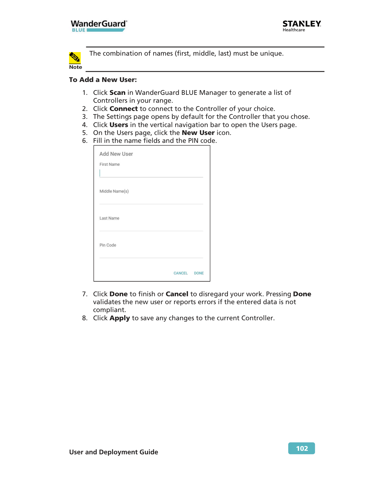 Note The combination of names (first, middle, last) must be unique. To Add a New User: