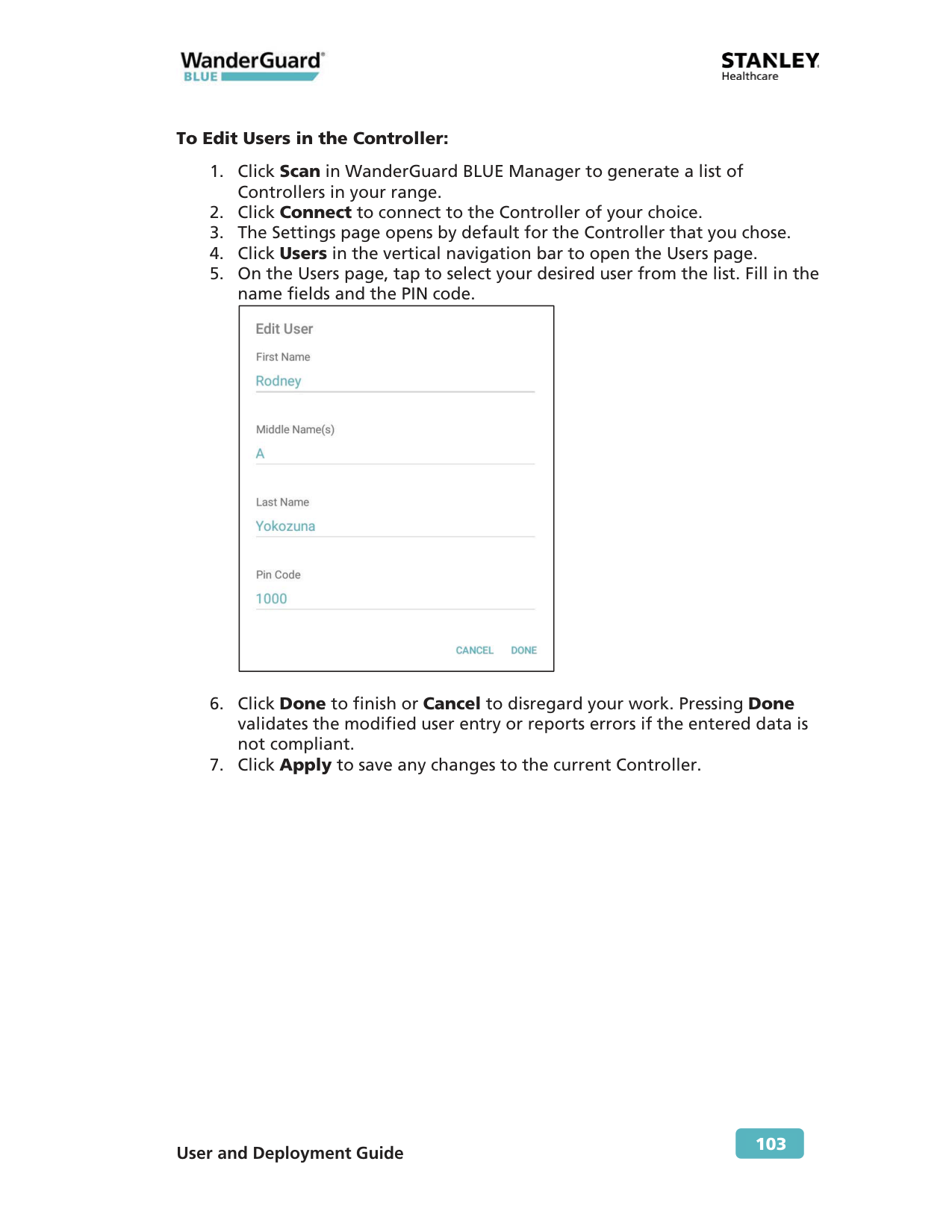 103 To Edit Users in the Controller:
