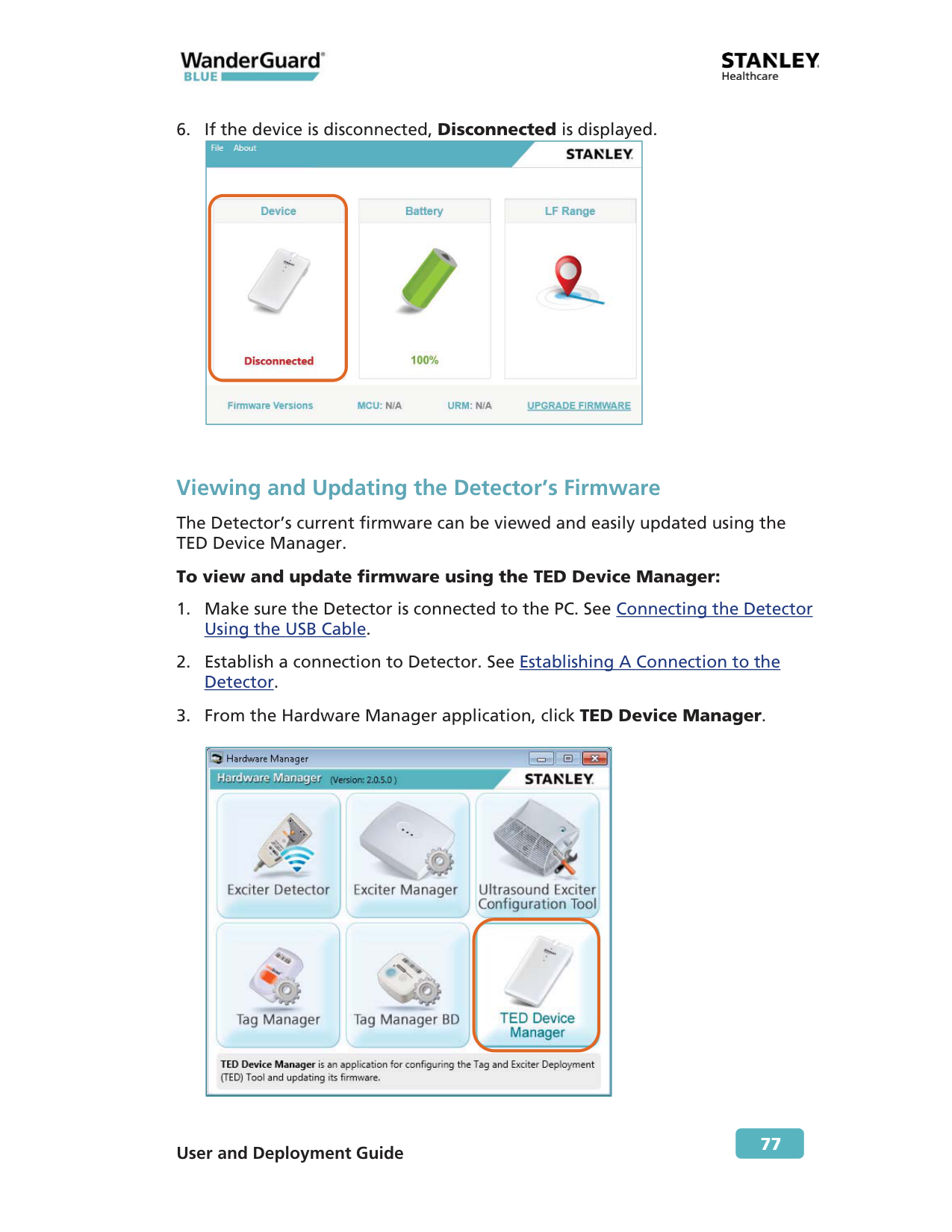 Viewing and Updating the Detector’s Firmware The Detector’s current firmware can be viewed and easily updated using the TED Device Manager. To view and update firmware using the TED Device Manager: