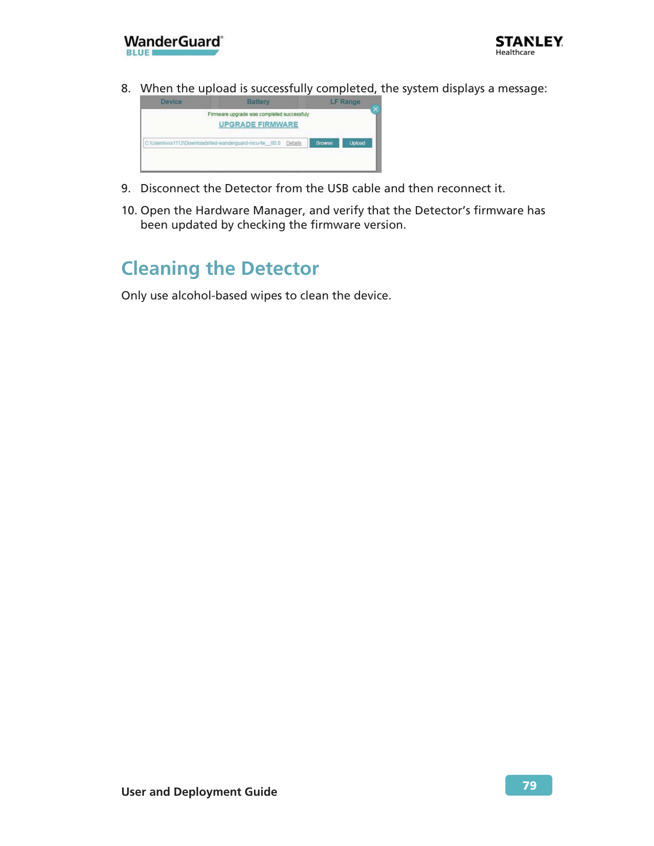 Establishing a Connection to the Detector A connection needs to be established before the Detector’s battery status can be viewed or firmware can be upgraded.