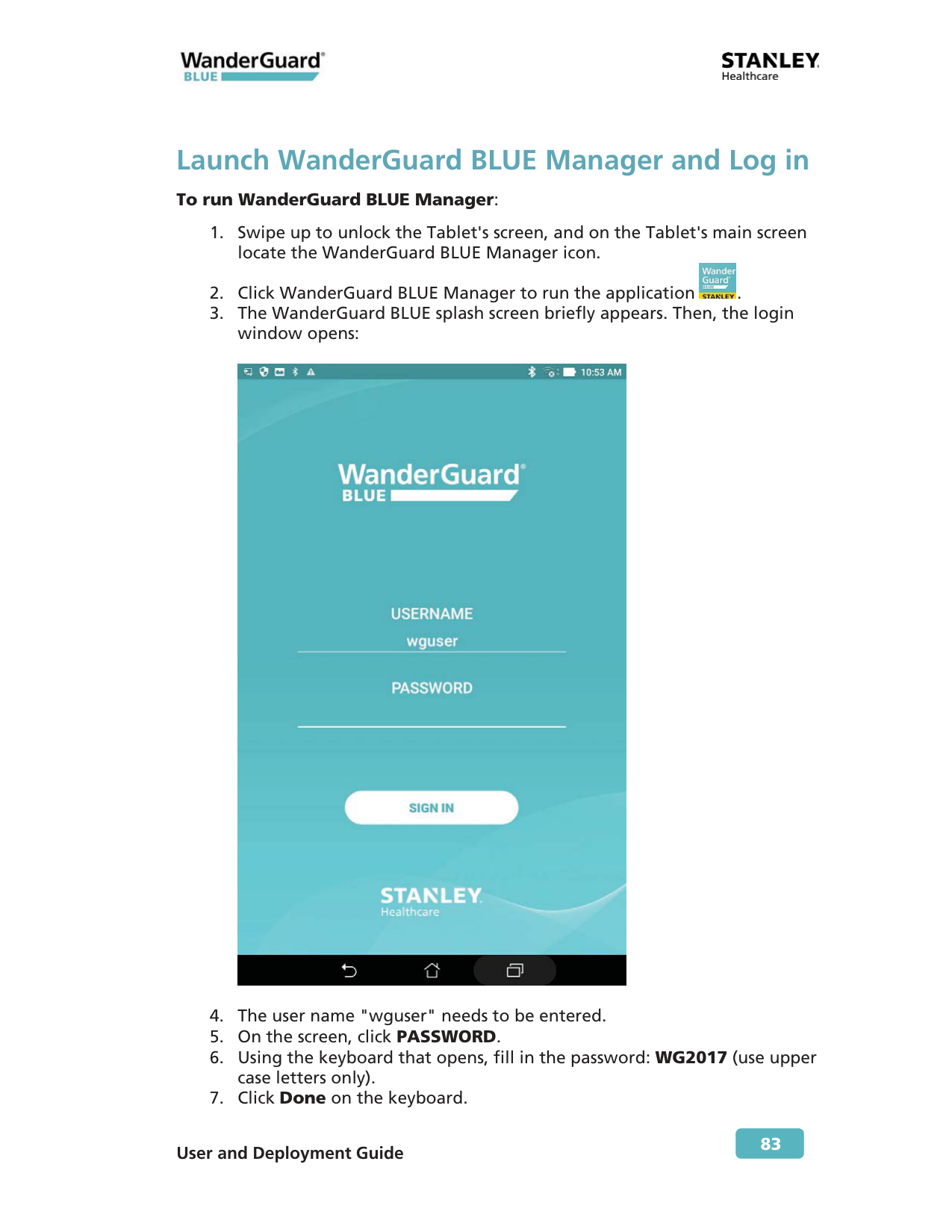 83 Launch WanderGuard BLUE Manager and Log in To run WanderGuard BLUE Manager: