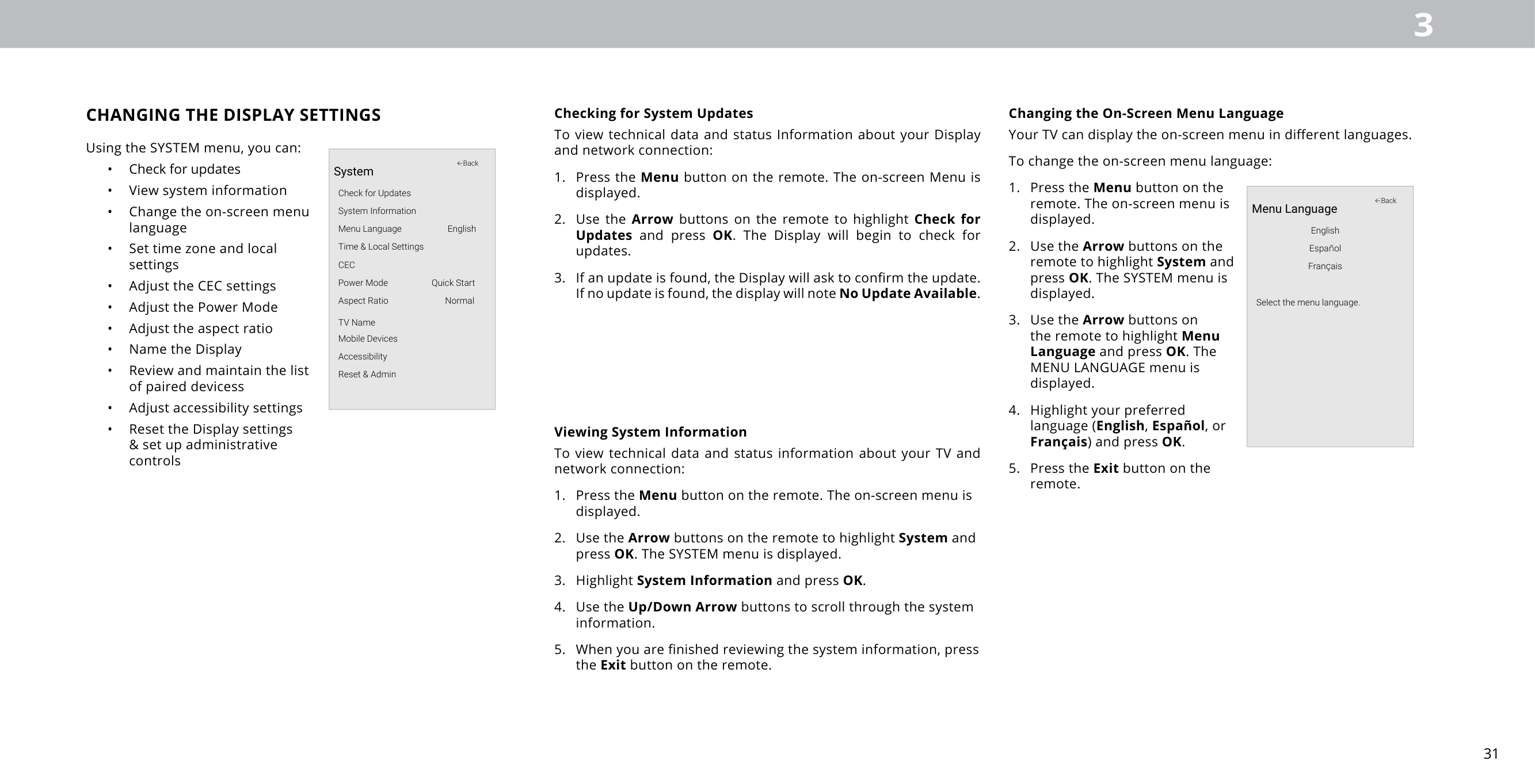 Input Port Custom Name Input Name Picture Size Picture Position Enter a custom name for HDMI-1. 303 Checking for System Updates To view technical data and status Information about your Display and network connection: