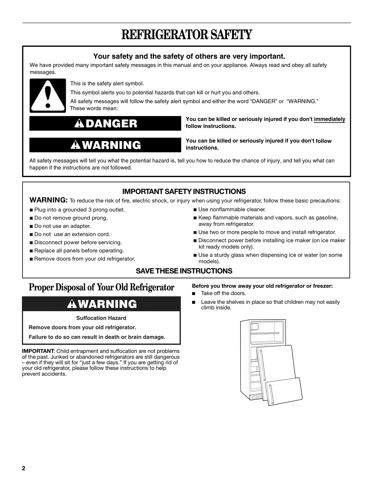 Refrigerator Safety............................... 2