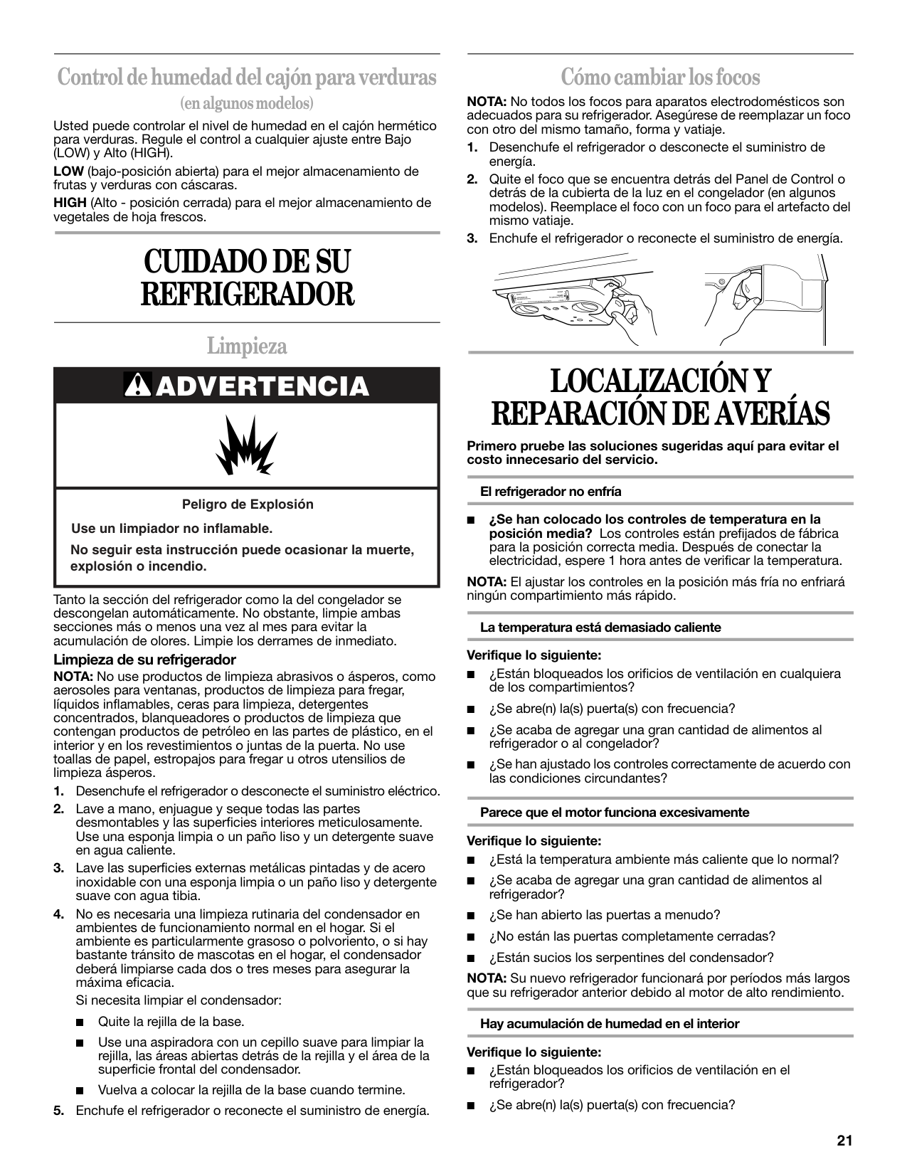 Cuidado De Su Refrigerador............. 21