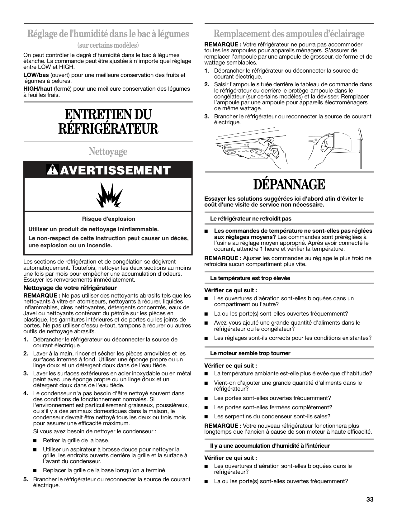 Entretien Du Réfrigérateur ............. 33