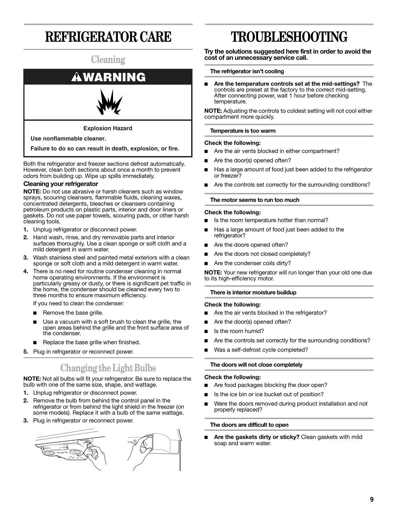 Refrigerator Care................................... 9
