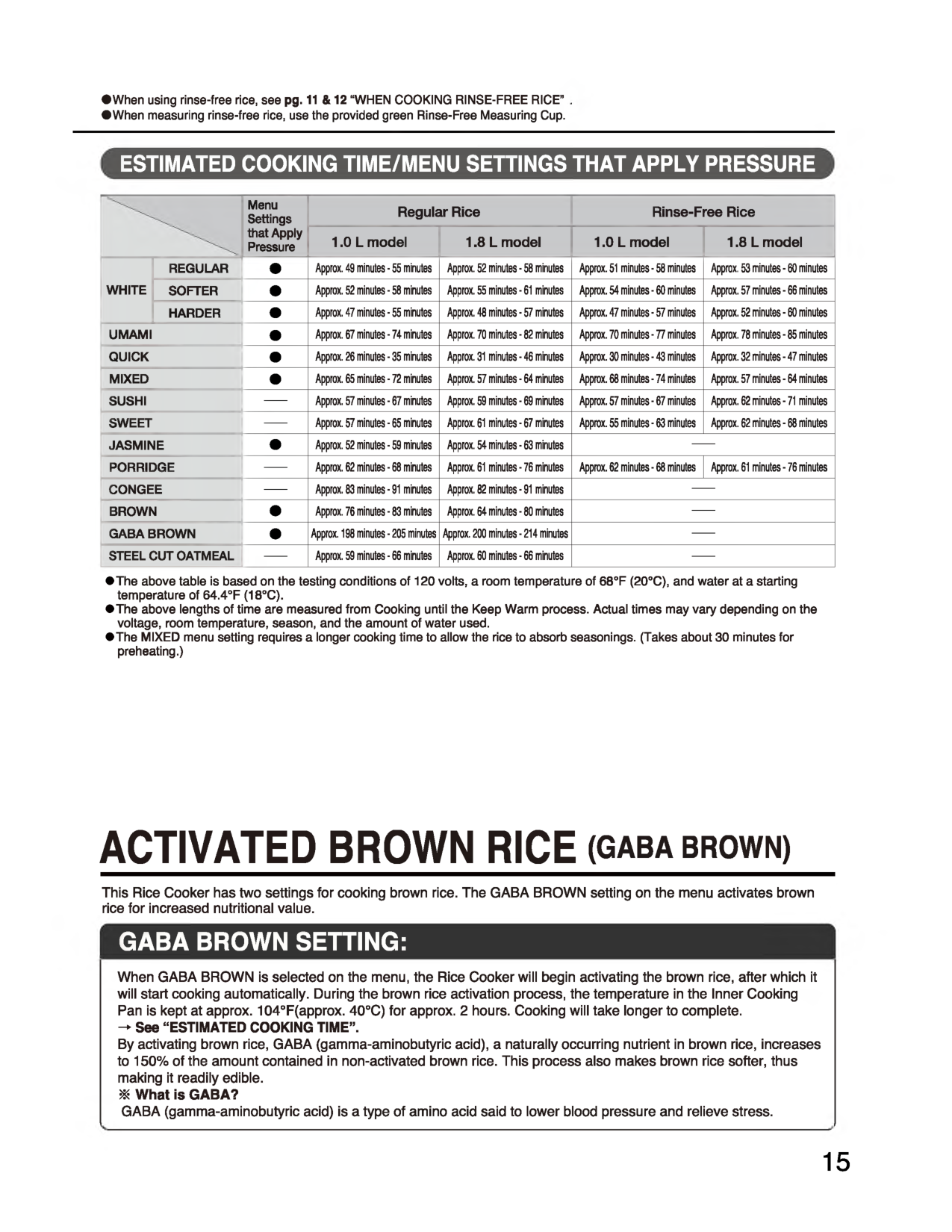 15 ...................................................Activated Brown Rice (Gaba Brown)
