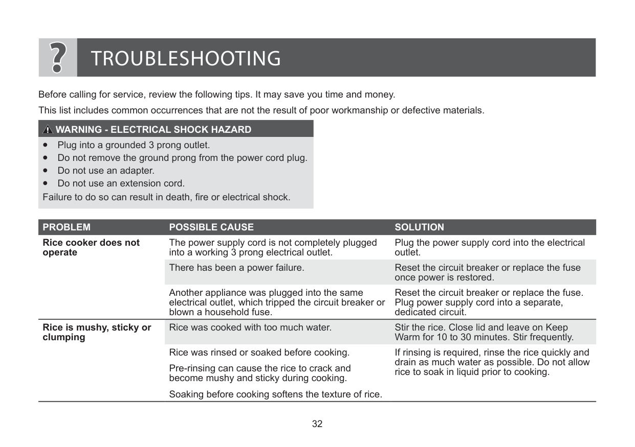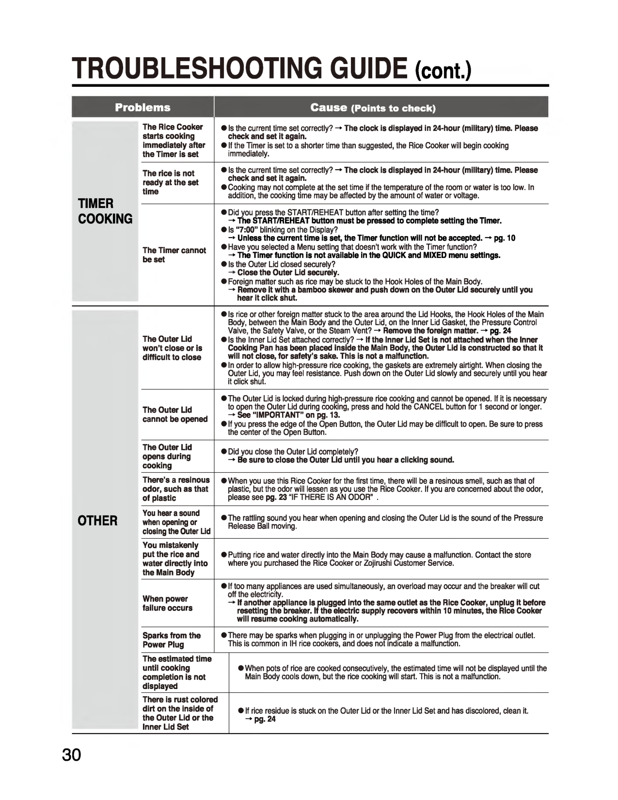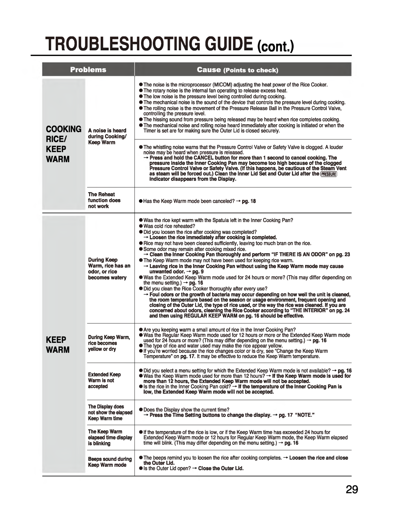 Rice cooks too hard or too softTROUBLESHOOTING GUIDE (cont.) Problems Cause (Points to check)