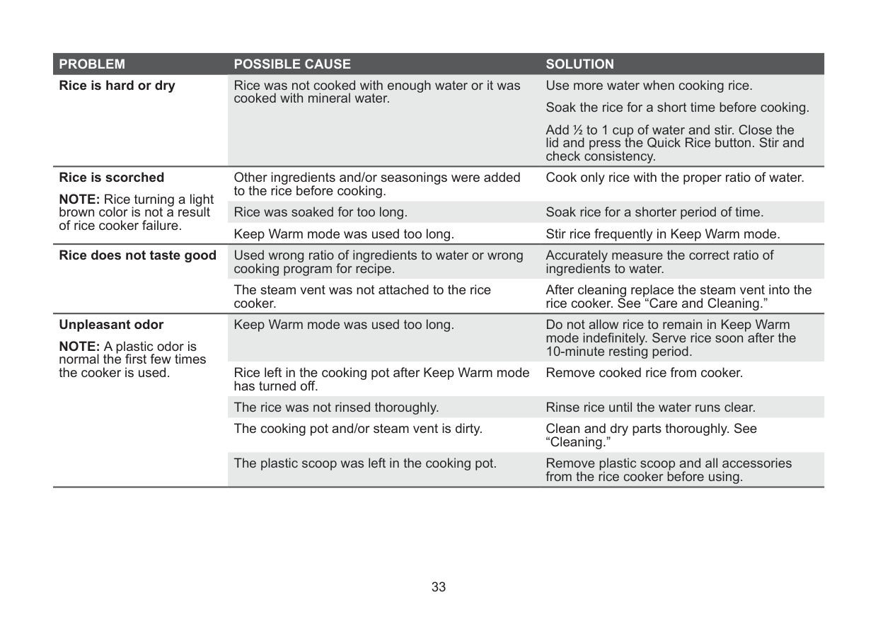 During Keep Warm, rice has an odor, or rice becomes wateryKeep Warm mode used for 24 hours or more? (This may differ depending on the menu setting.) pg. 16